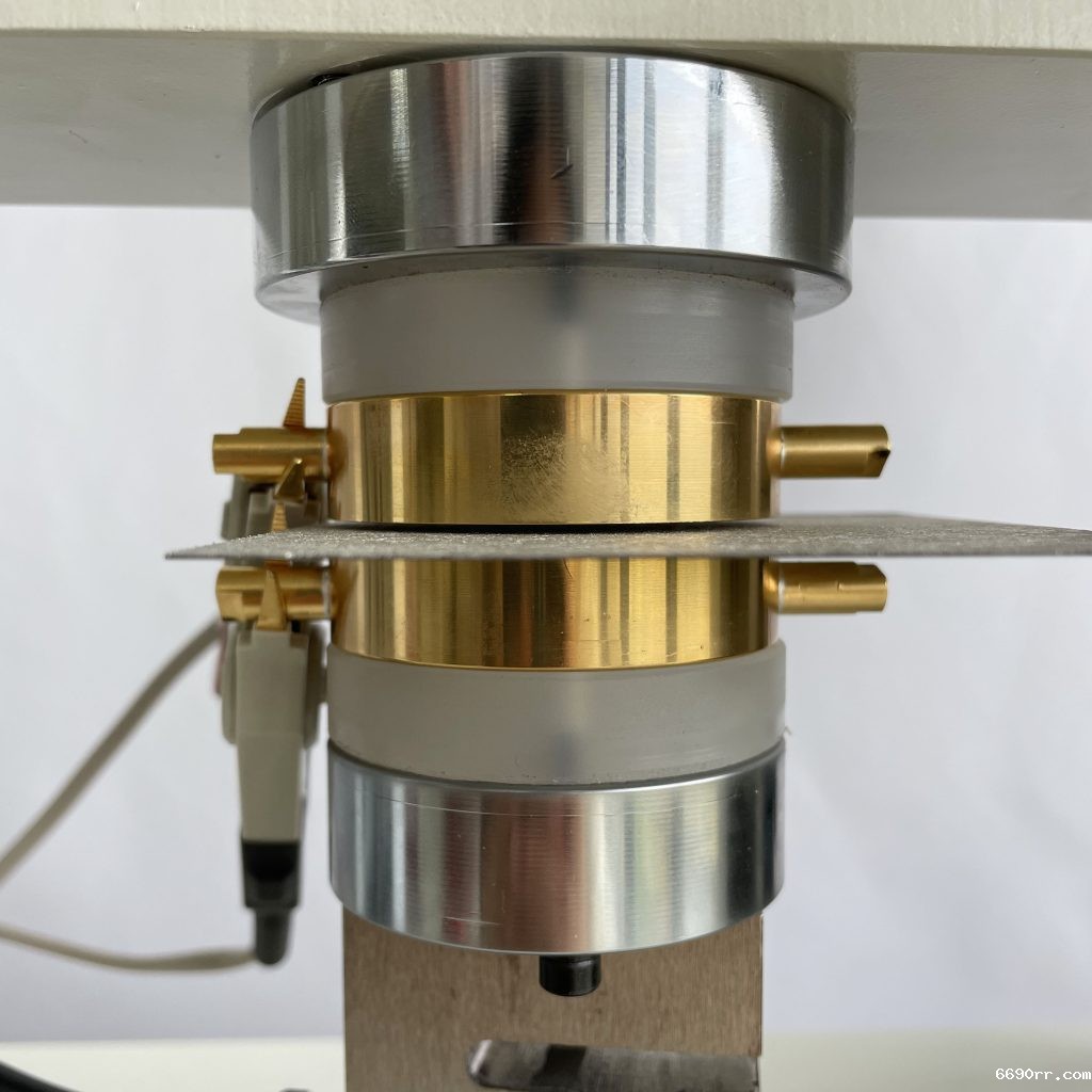 垂直方向电阻率测试方法:根据碳纸的标准要求测出样品的厚度。将样品放置测试装置中的两个测量电极之间。测量电极为镀金电极。压强每增加0.05MPa,用底电阻测试仪测量两电极之间的电阻值。记录不同压强下的电阻值,直到当前测得的电阻值 与前一电阻测试值的变化率不大与5%时,则认为达到电阻的最小值,停止测试。(推荐测量压强范围为0.05MPa~5.0MPa)