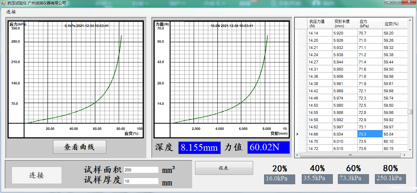 触摸屏中文显示,友好人机界面操作。具有测试数据统计处理功能,微型打印机输出,连接电脑操作。连接电脑时,除了可自动记忆储存结果外,显示压缩曲线并保存。